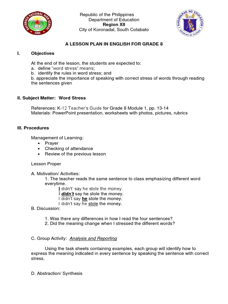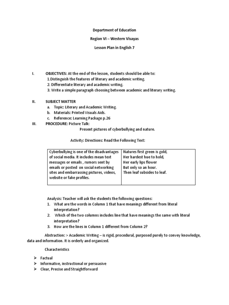 Introduce the meaning of vocabulary enhancement. This individual lesson plan focuses on writing an abstract. Objectives content learning resources procedures remarks and reflection. Objectives at the end of the class period the pupils should be able to.