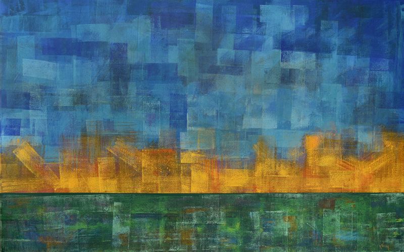 Designart Abstract Water Sunset Painting Print On Wrapped Canvas