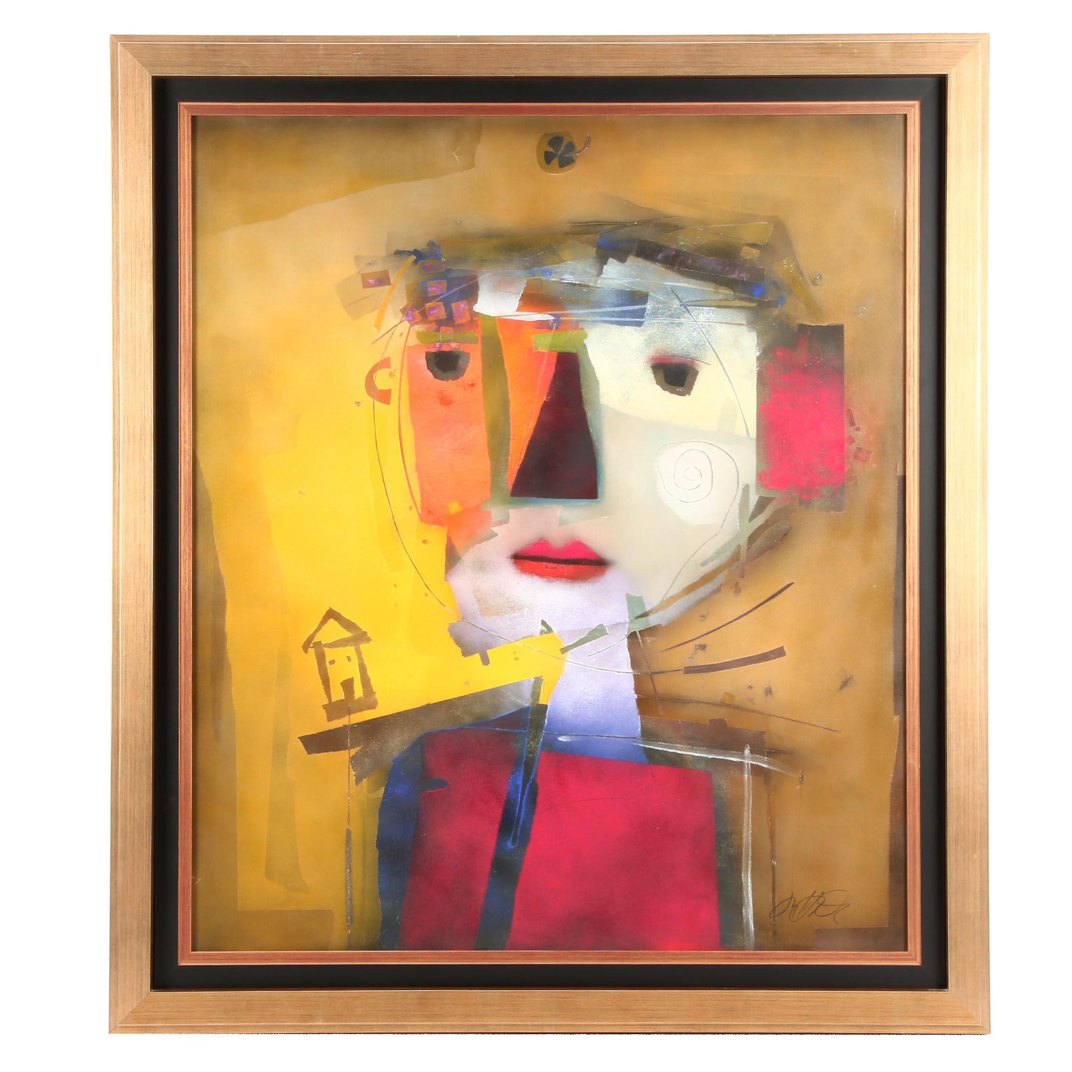 Original Unikat Painting Abstract Modern Acrylic Face Canvas