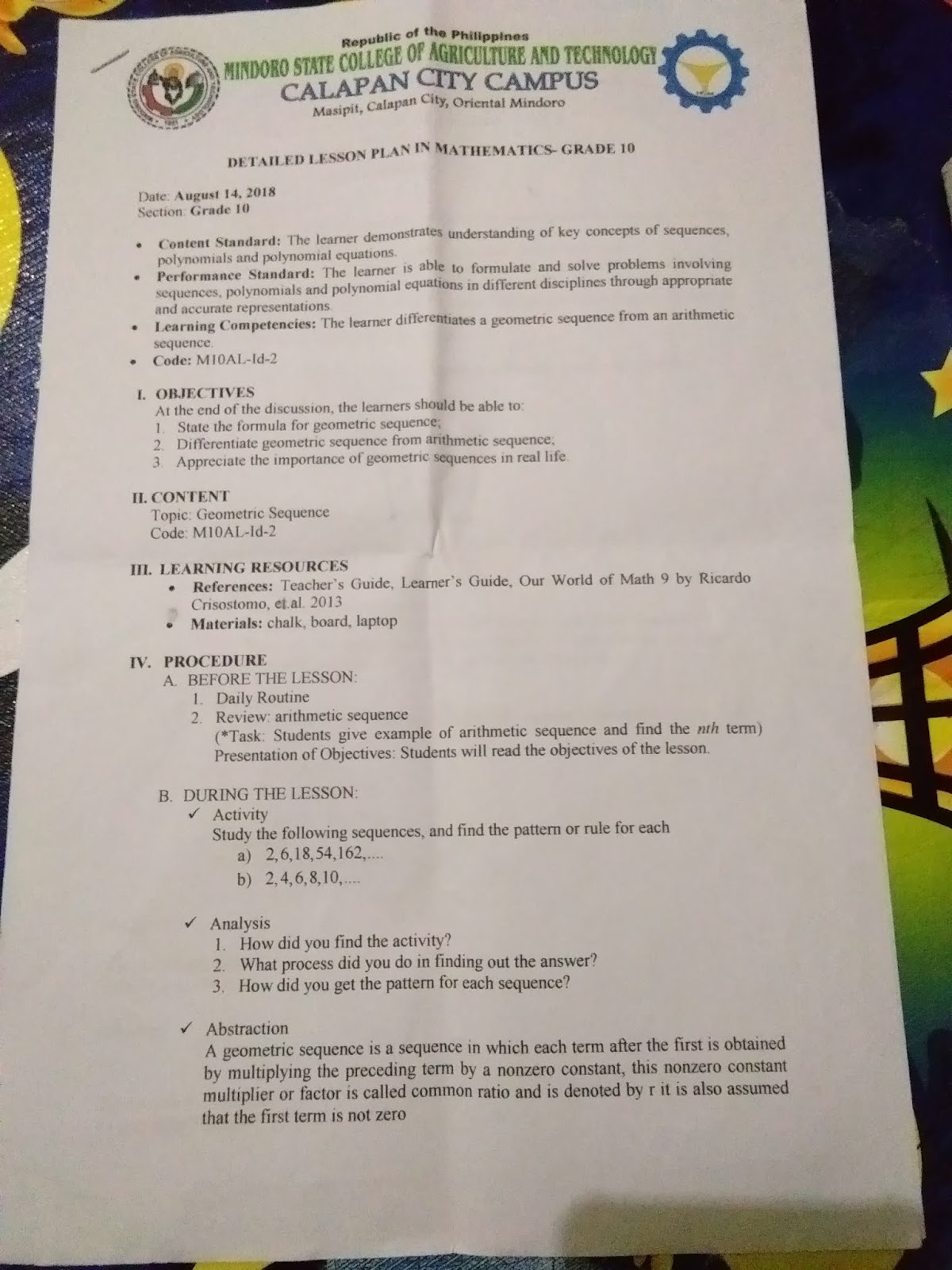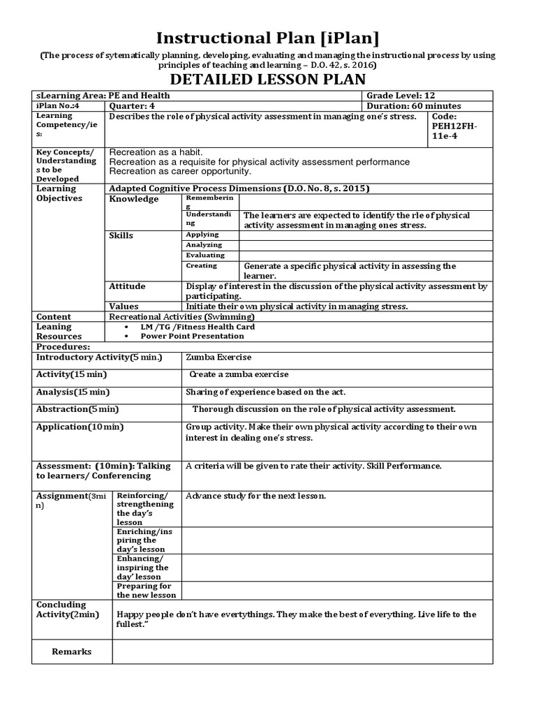 A Detailed Lesson Plan For Alternative Instructional Delivery