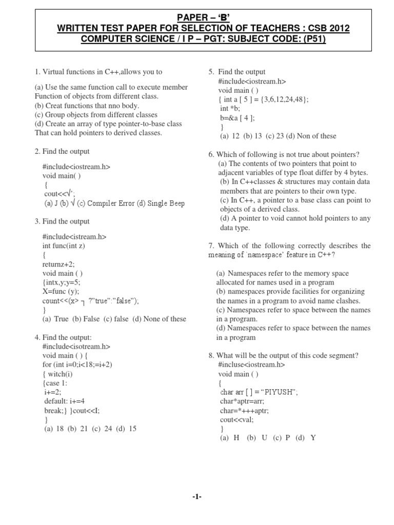 Abstract Class Object Oriented Programming Questions And Answers