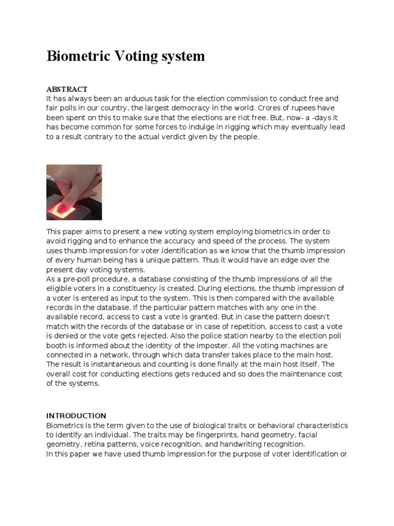 Biometric Voting System Full Seminar Report Abstract And