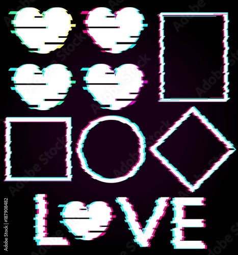 Black And White Abstract Love Heart Icon Set Vector Image