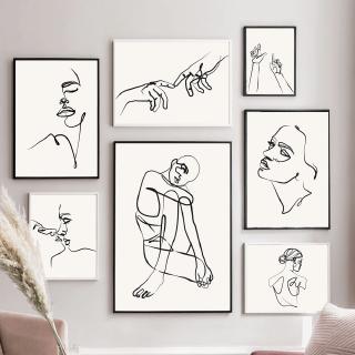 Black White Abstract Line Nude Body Art Woman Wall Art Canvas