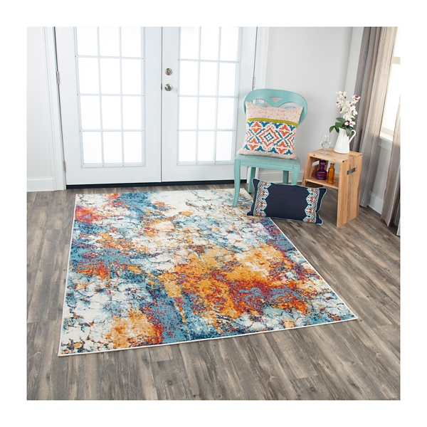 Shop Porch Den Kittiwake Ivory Blue Abstract Area Rug On Sale