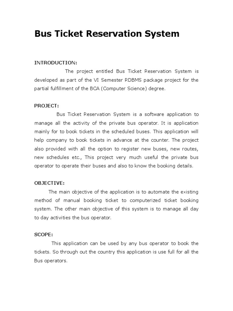 Online Bus Ticket Booking System Project Synopsis And Final Report