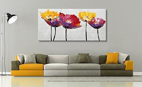 Yika Art Red Poppy 24x48 Inch Abstract Flowers Painting Gary 3d