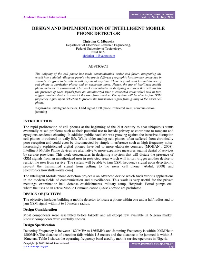 Project Report Of Cell Phone Detector Circuit