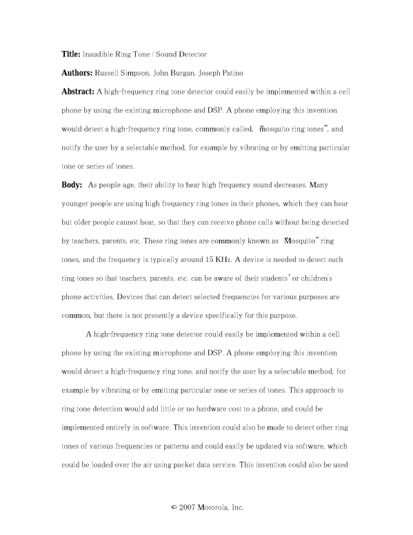 Inaudible Ring Tone Sound Detector