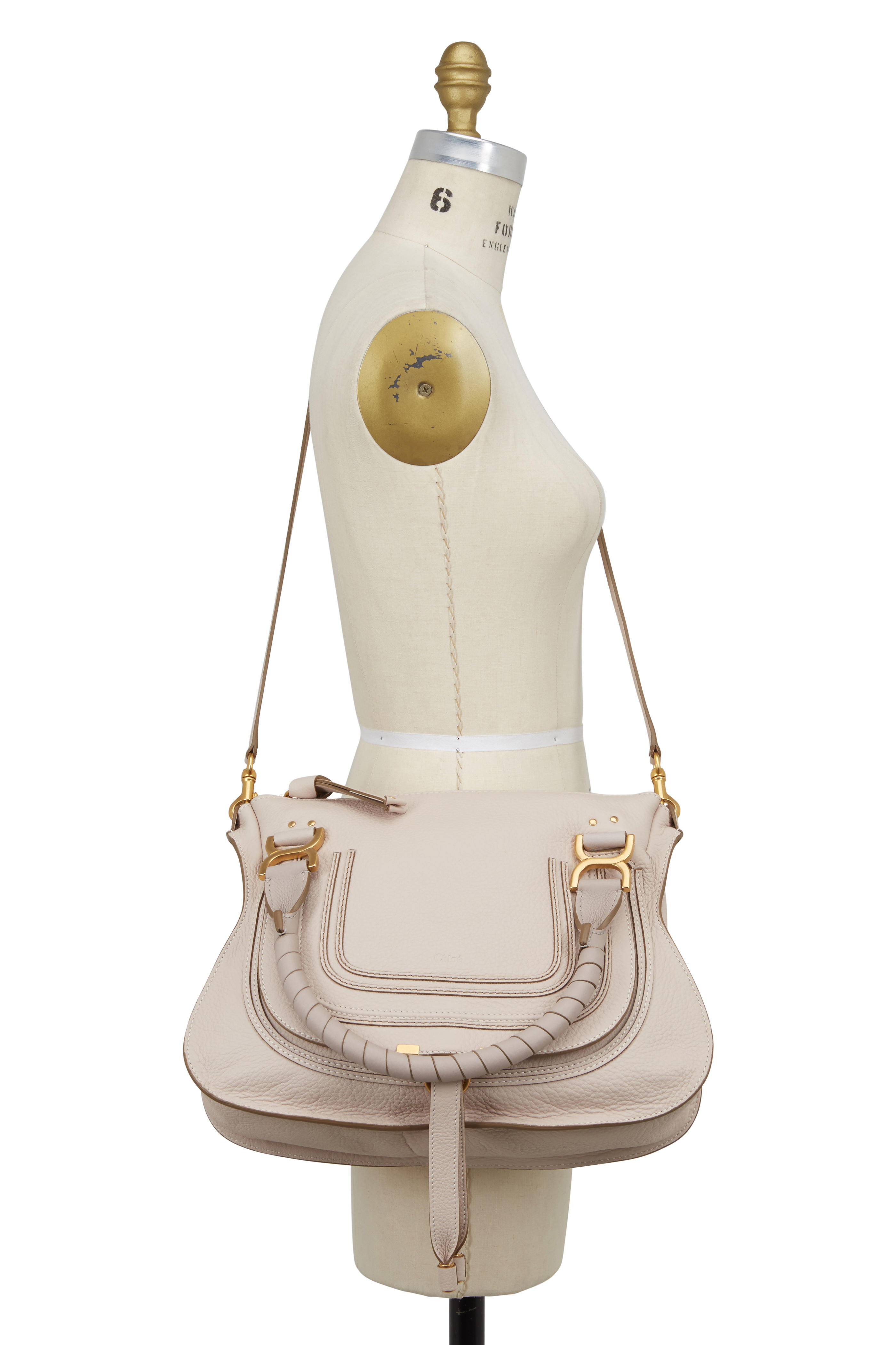 Chloe Pebbled Leather Medium Marcie Satchel Bag Taupe Color Ebay