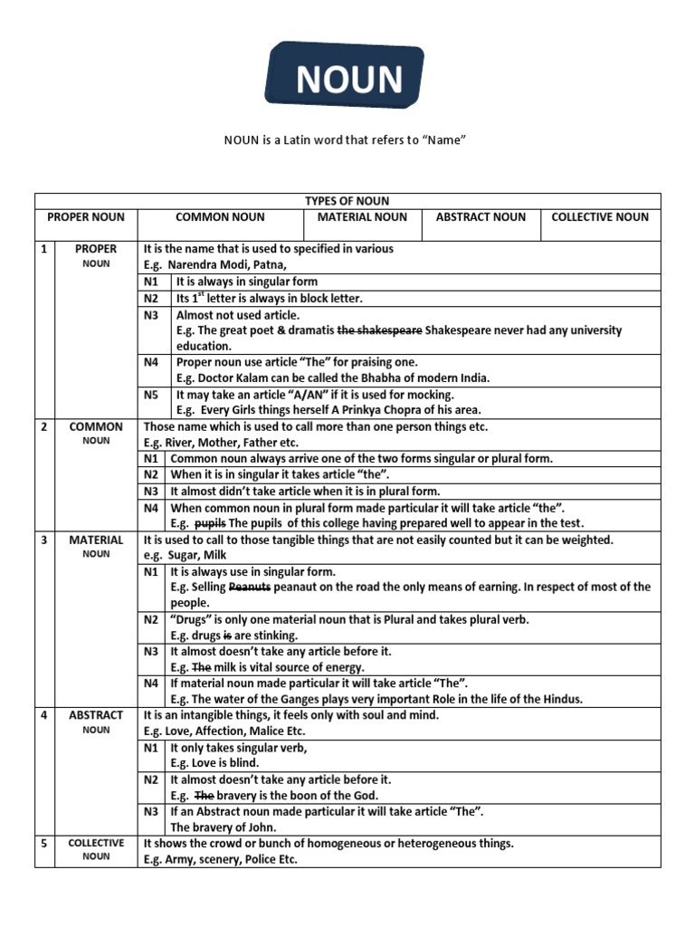 What Are The Seven Kinds Of Nouns Socratic
