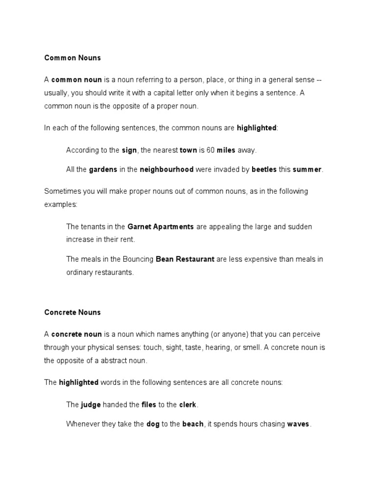 Noun Worksheets Common And Proper Abstract Collective Plural