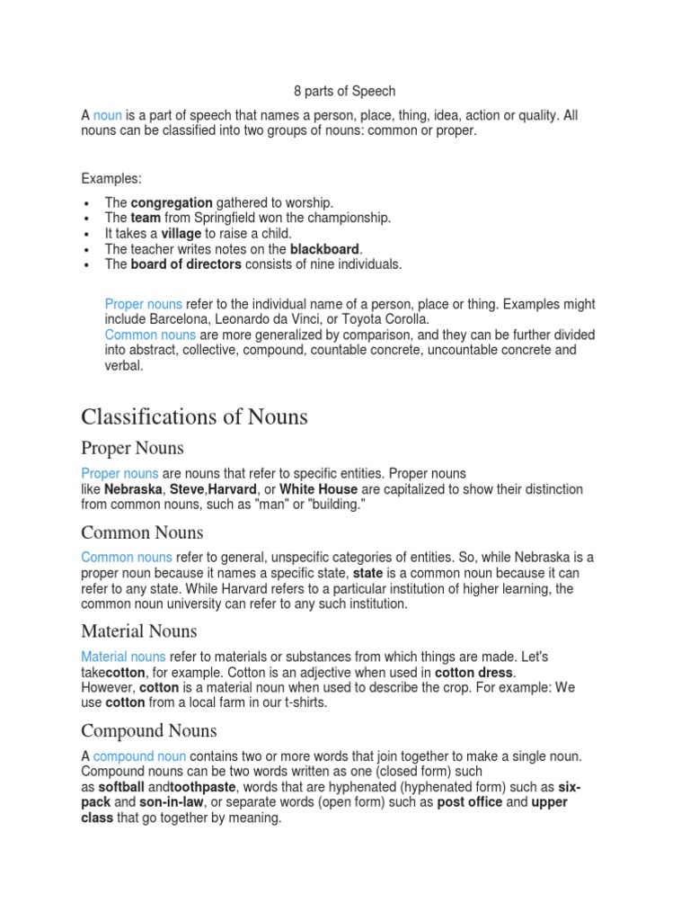 Parts Of Speech Concrete Abstract Collective Compound Common