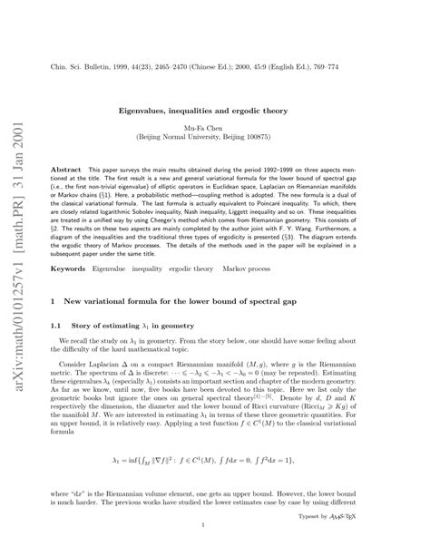 Download Eigenvalues Inequalities And Ergodic Theory 1st Edition