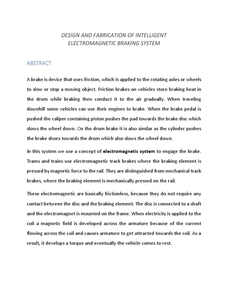 Electromagnetic Braking System Magnetic Braking System Project