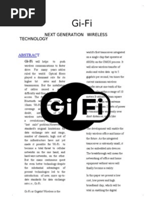 Pdf Introduction To Gi Fi Technologies Used Working Principle