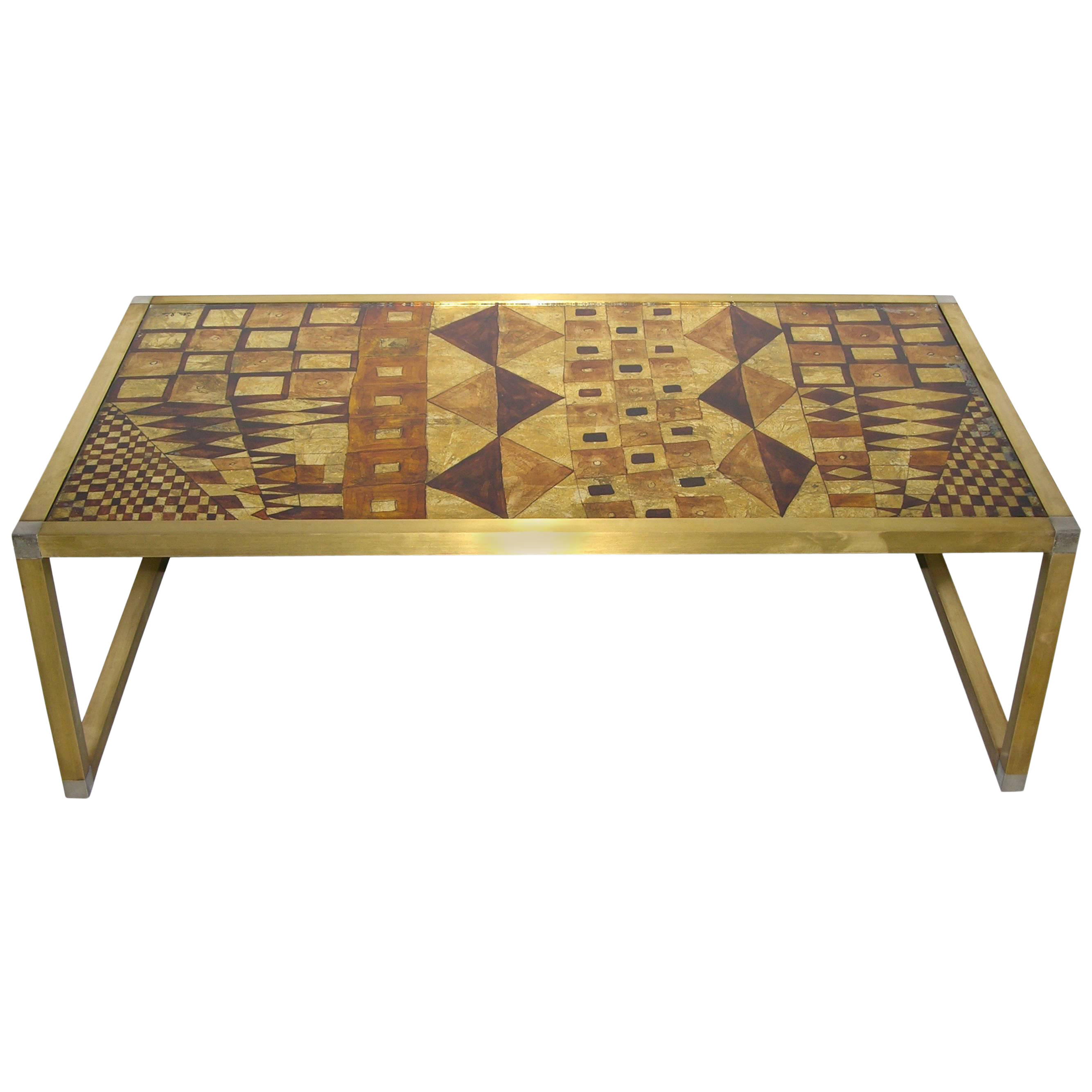 Cristal Art Midcentury Coffee Table Glass Top Abstract Decorated