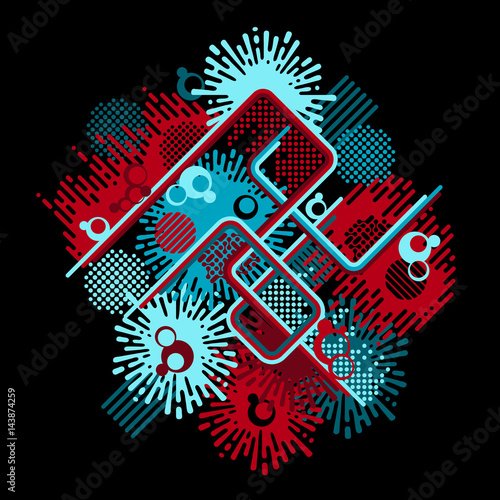Abstract Geometric Artwork In Retro Disco Style With Lines Rounds