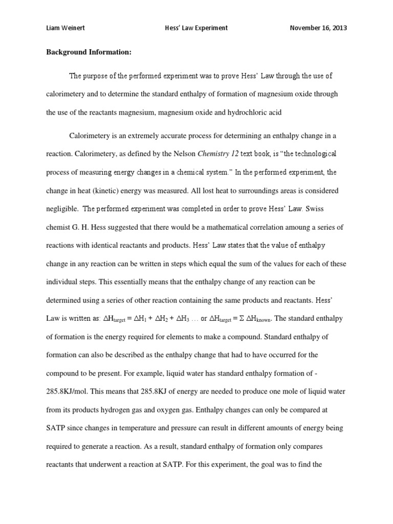 Doc Heat Of Formation Of Nacl Post Laboratory Report Krystel
