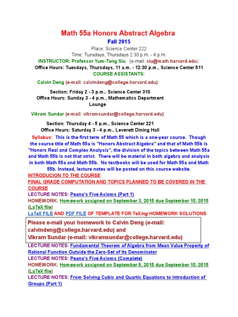 Free Honors Abstract Algebra Course Notes Math 55a Harvard