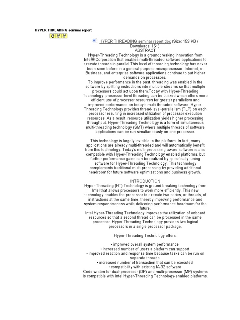 Pdf Performance Study Of Hyper Threading Technology On The