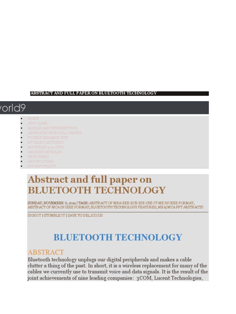 Bluetooth Paper Presentation Ieee