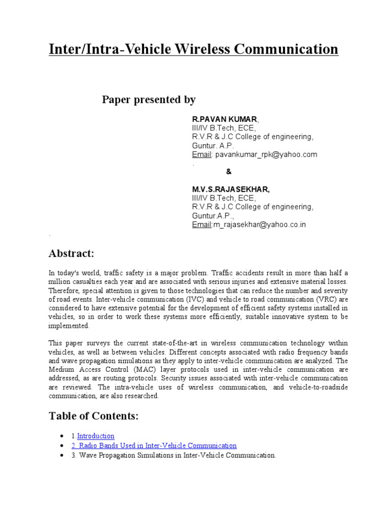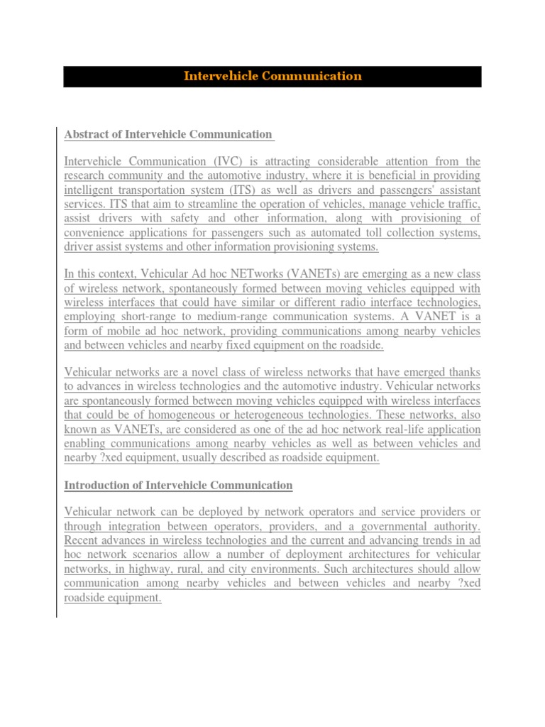 Inter Vehicle Communication