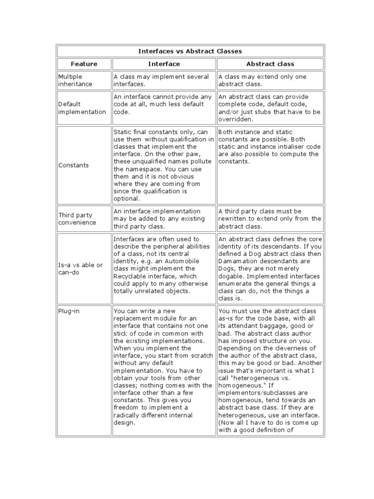 Interfaces Vs Abstract Classes Feature Interface Abstract Class