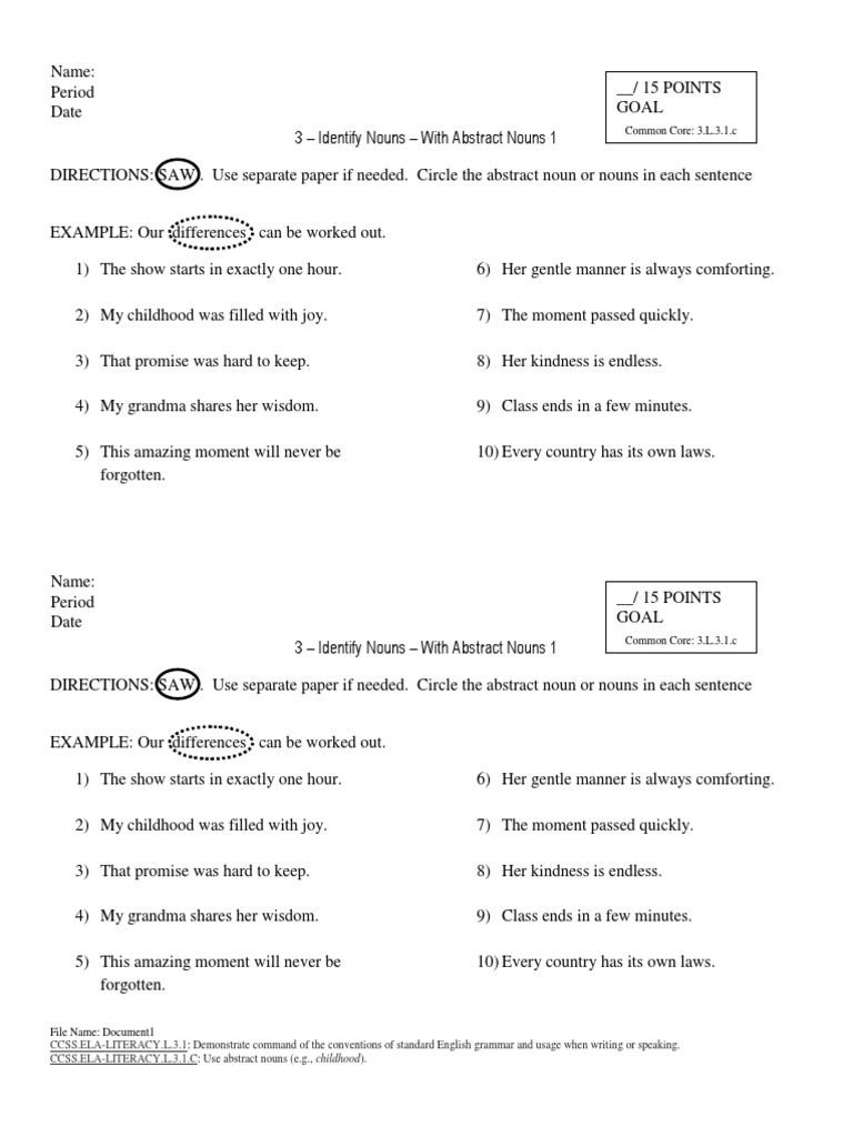 Https Www K5learning Com Worksheets Grammar 3rd Grade Circle Abstract Noun 1 Pdf