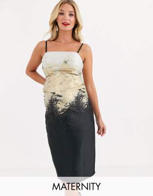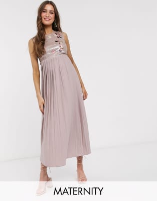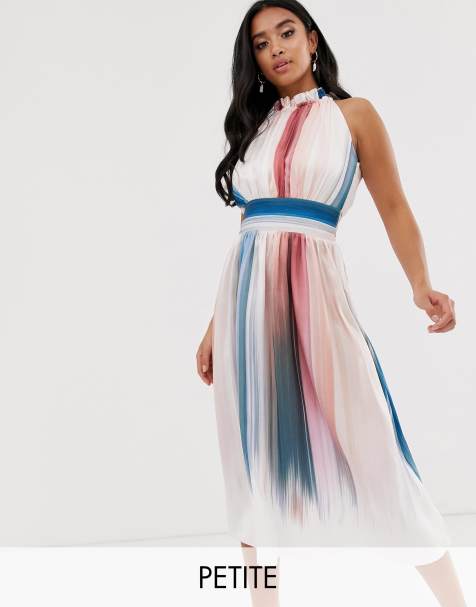 Little Mistress Watercolour Pleated Halter Maxi Wedding Occasion Dress