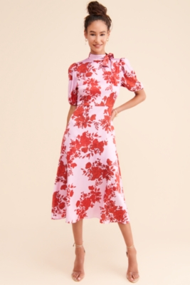 Monique Lhuillier Dresses Ml Red Abstract Floral Dress Poshmark