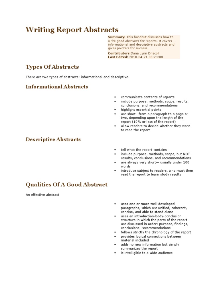 Format The Abstract Page In Apa Style 6th Edition Owlcation