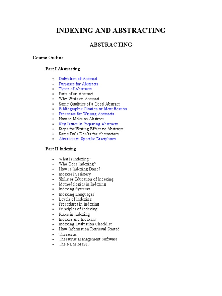 Indexing And Abstracting Food And Drug Administration Abstract