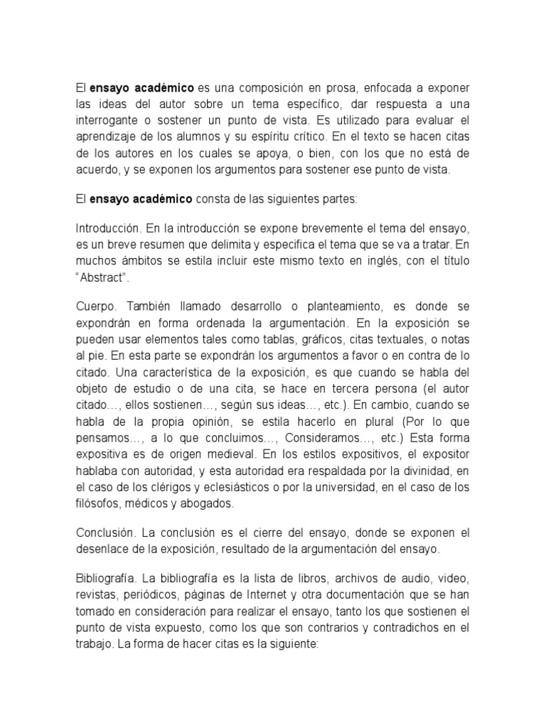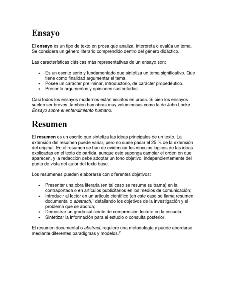 El Ensayo Y Resumen Academico Sumario Abstracto Ensayos