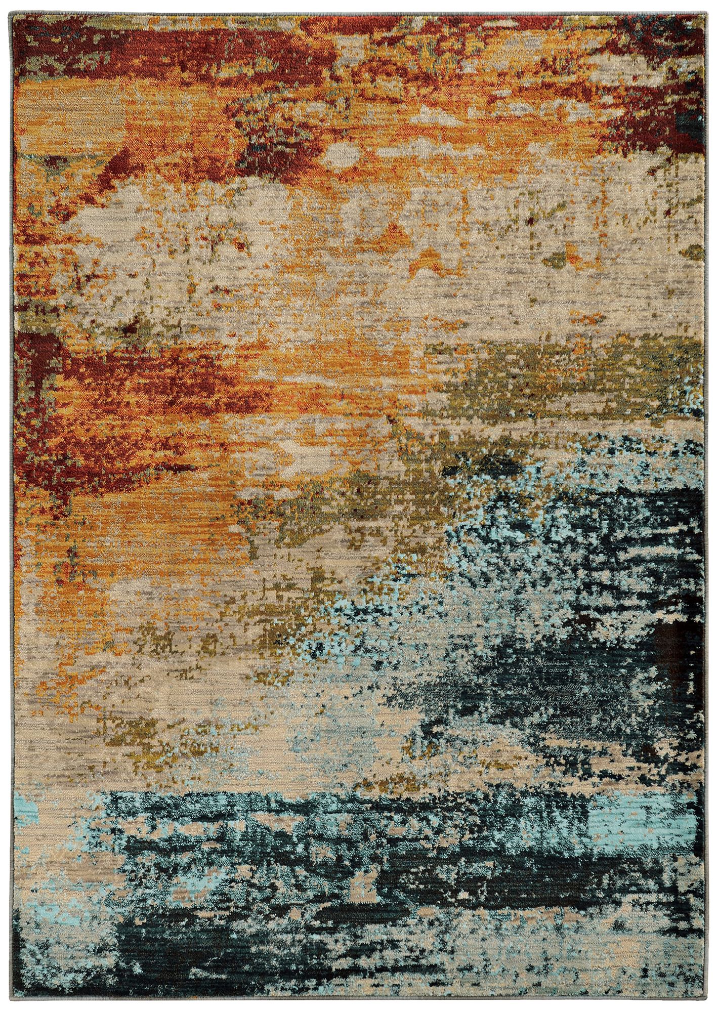 8 X 10 Abstract Area Rug With Red Wine Green And Yellow Colors