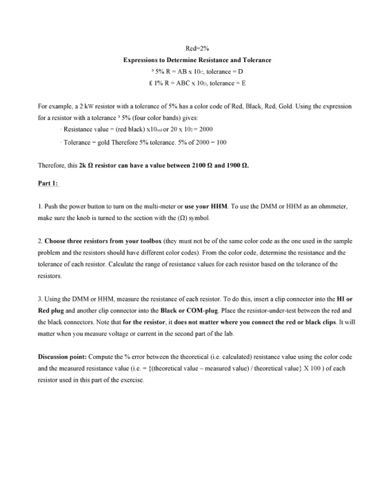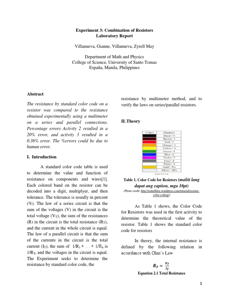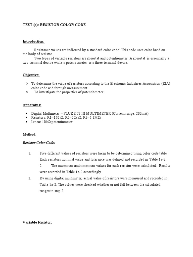 Resistance Measurements And Color Codes Lab