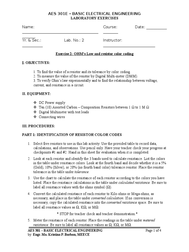 Lab 02 Resistor Color Coding And Ohms Law