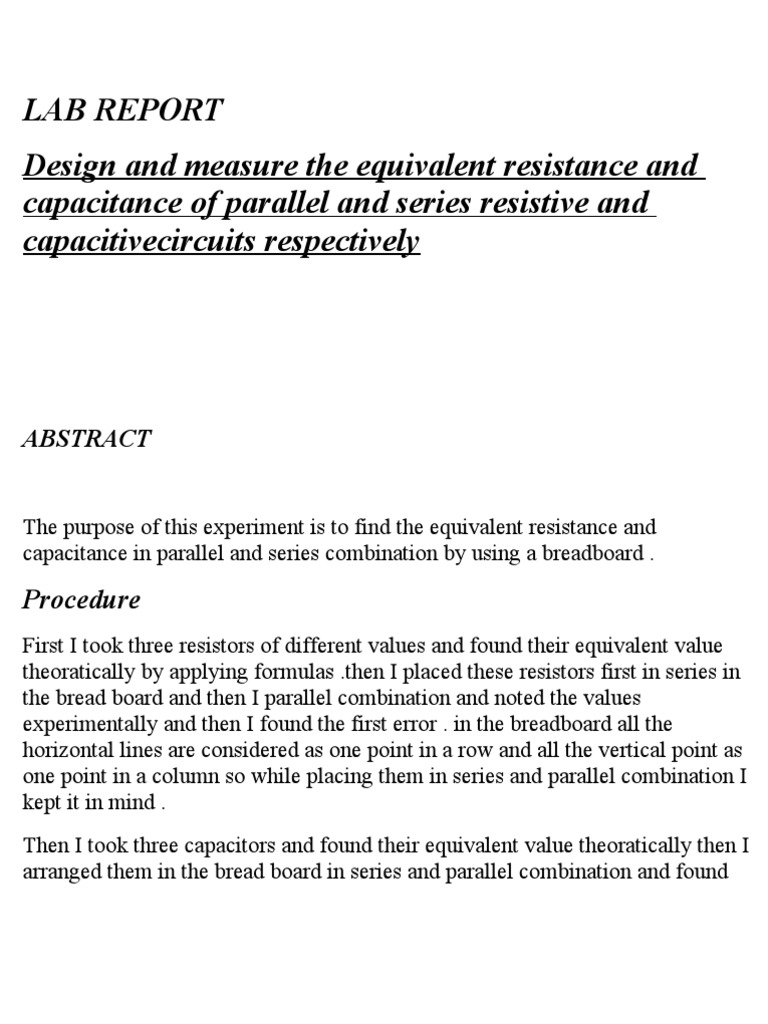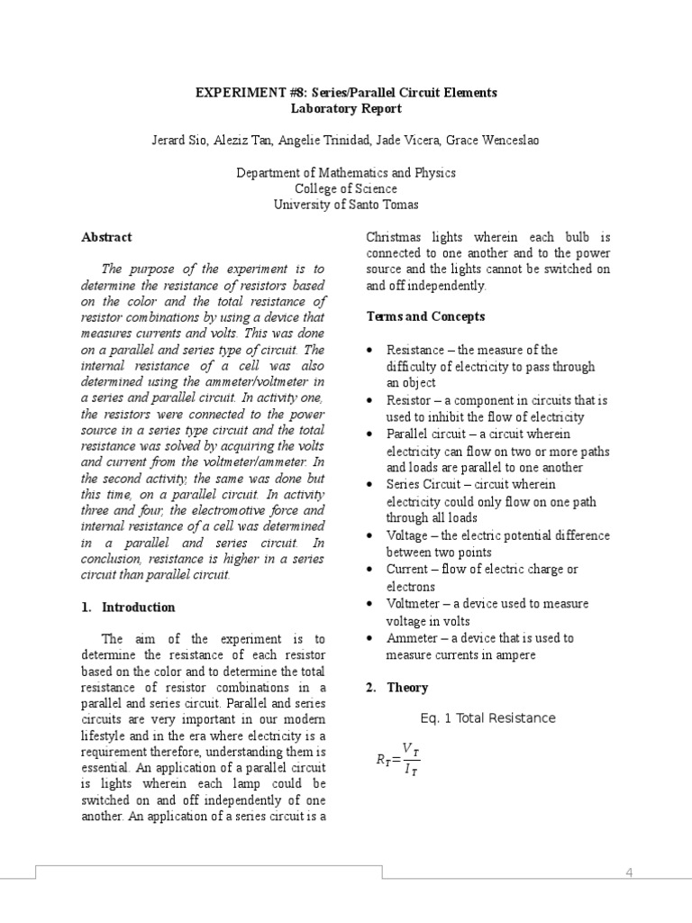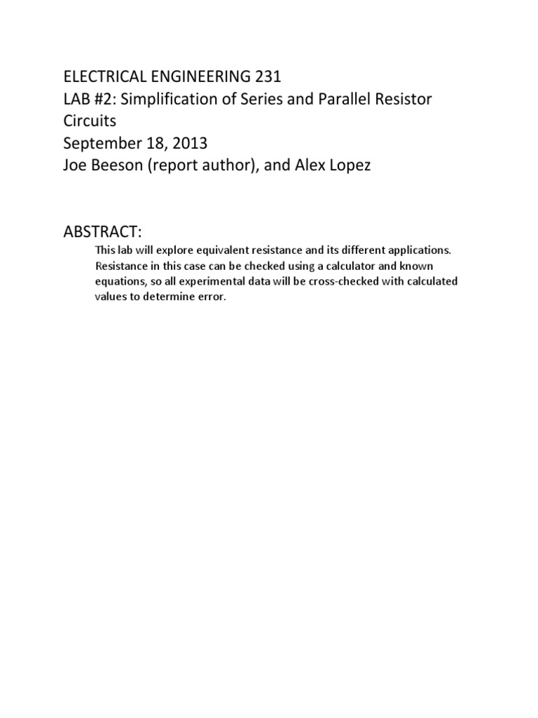 Sample Of Lab Report Series Resistance