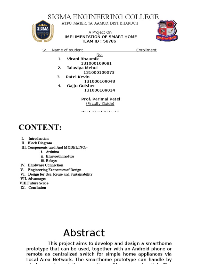 Project Report On Home Automation Using Arduino