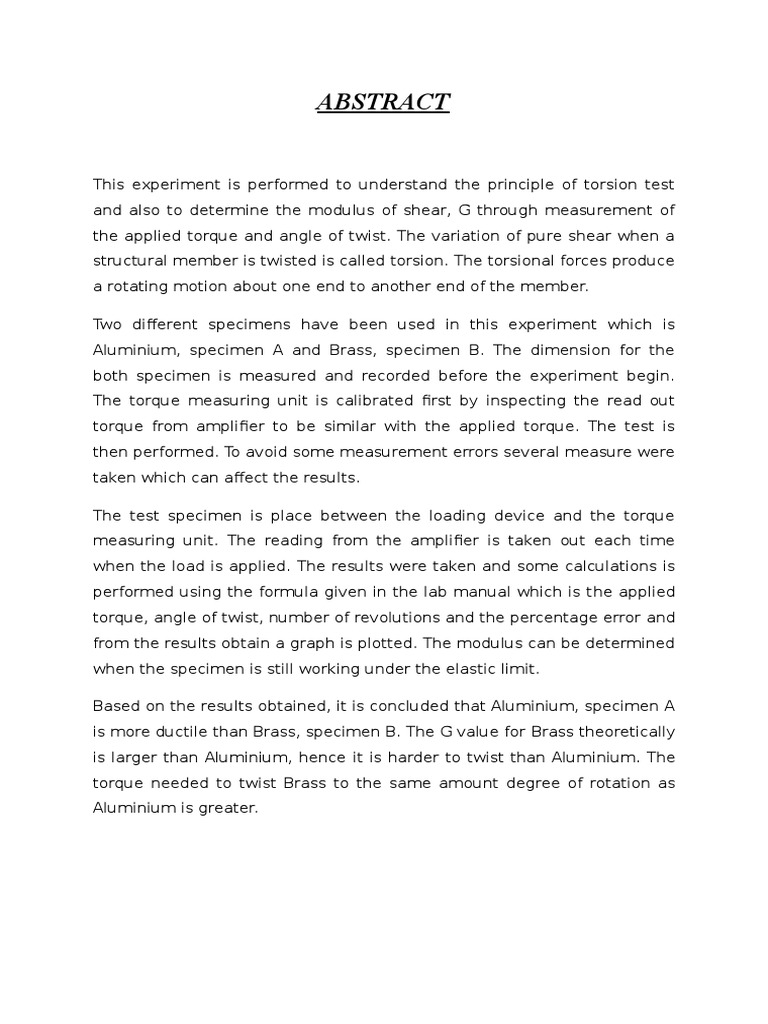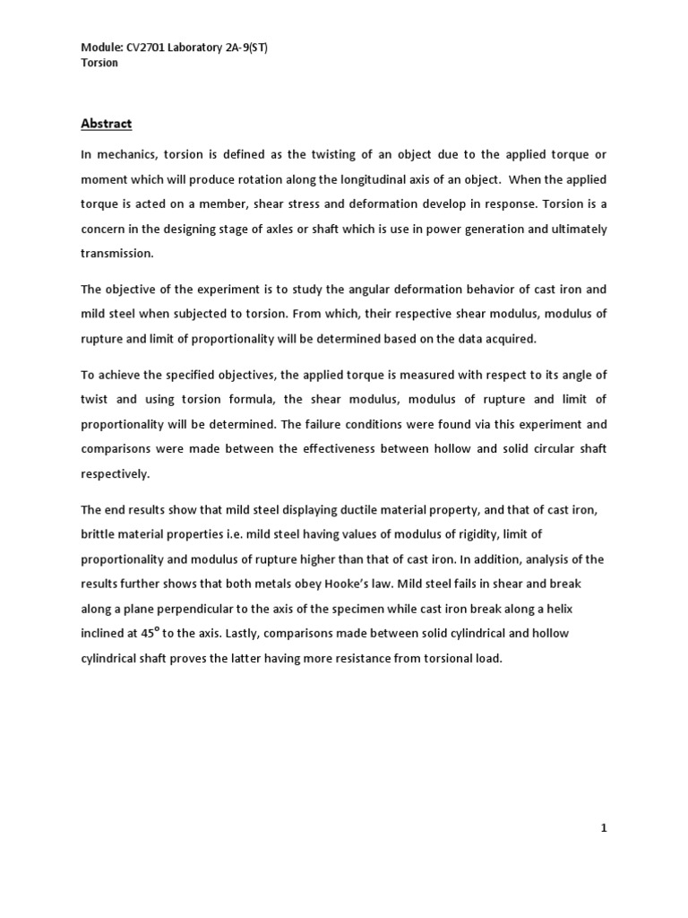 Torsion Formal Report Docx Deformation Engineering Stress