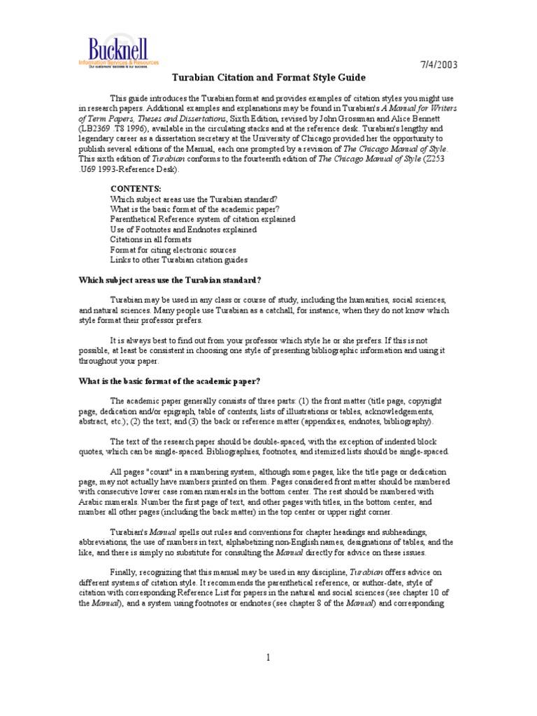Turabian Format For Turabian Research Papers Template