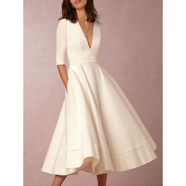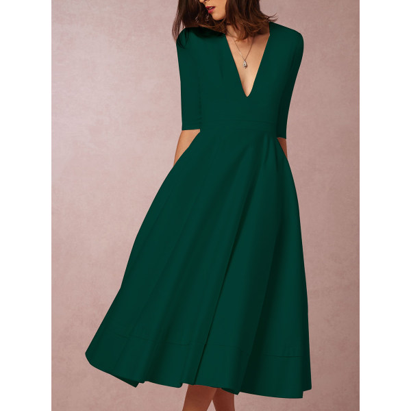 Sexy Deep V Neck Solid Midi Skater Dress Only 39 95 Allinlike Com