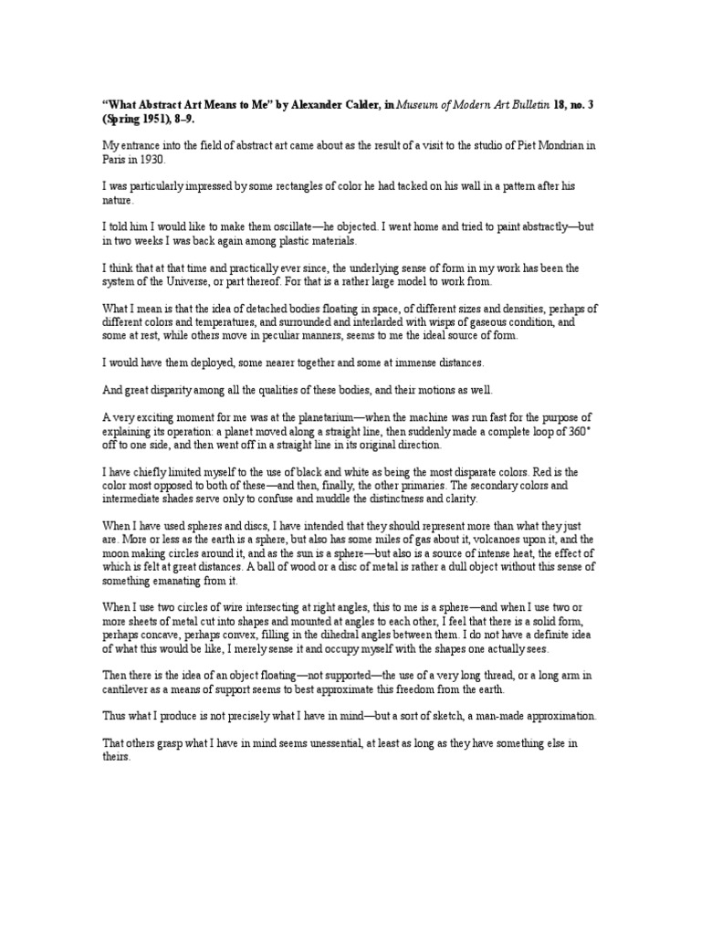1951 What Abstract Art Means Calder Sphere Abstract Art