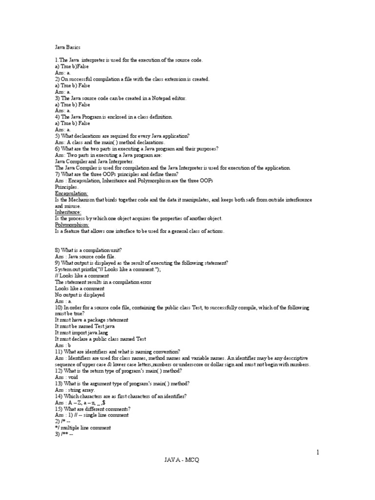Java Multiple Choice Questions Answers A Door To Success