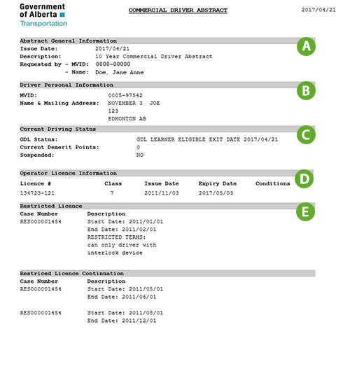 Ontario Ministry Of Transportation Driver S Abstract