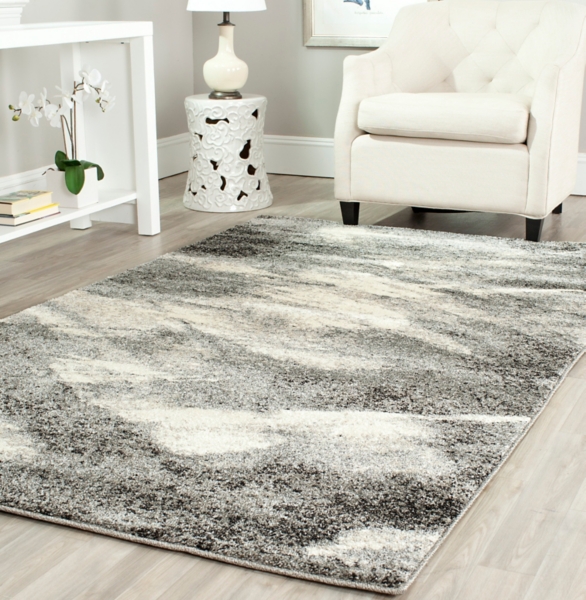 Gray And White Abstract Splatter Rug