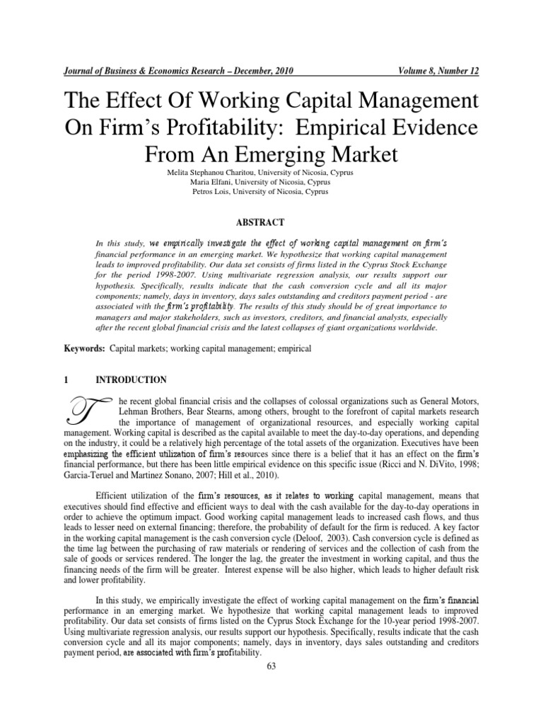 The Impact Of Working Capital Management On Firm Value Evidence